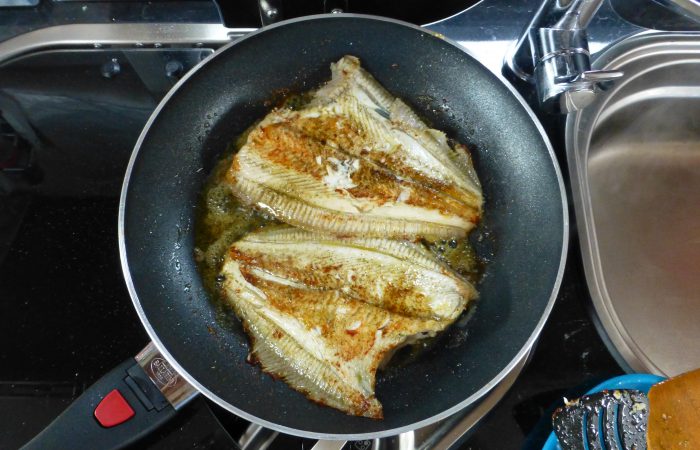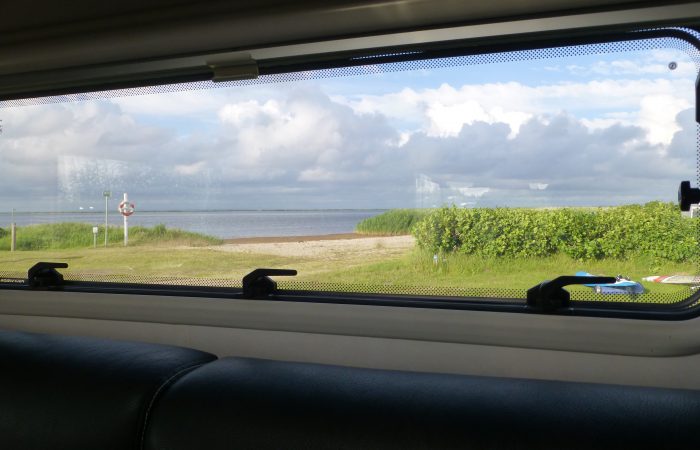 haben wir einen wunderbaren Blick auf den Ringkøbing Fjord. Das flache Wasser ist ideal für Surfer und Kitesurfer. Am Abend kamen zwei ordentliche Rødspæter (Schollen) in die Pfanne, dazu gab es neue Kartoffeln und Salat.