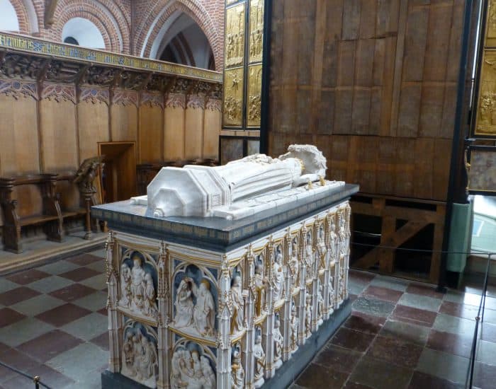 hinzu. Viele dänische Monarchen wurden hier beigesetzt. Auch für die heutige Königin Margrethe II und ihrem Prinzgemahl ist das Modell ihres Sarkophags schon ausgestellt, was uns doch recht makaber erscheint, zumal