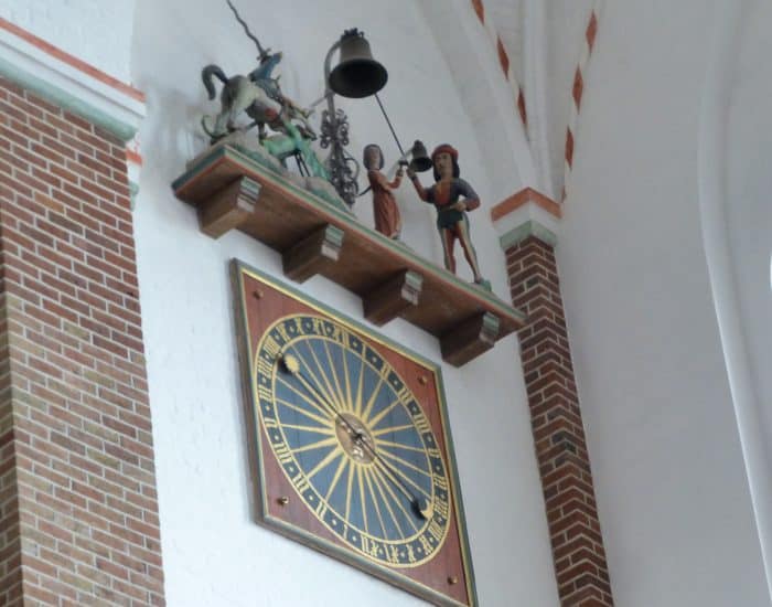 Es gibt auch eine Uhr mit mechanischen Figuren, vergleichbar mit dem „Zytglocke“ in Bern.