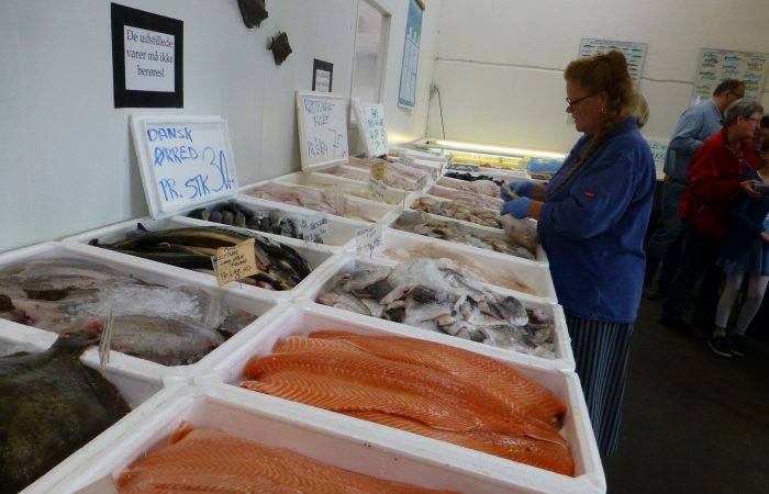 Brandung und hohe Wellen mit Schaumkronen sind zu sehen. Wir beschlossen heute das Kattegatcentrum in Grenaa zu besuchen. Vorher schauten wir aber noch beim Fischladen rein und bestaunten die reiche Auswahl an fangfrischer Ware. Wir kauften Lachs für heute Abend.