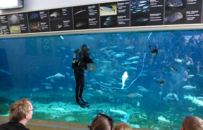 Fische von einem Taucher gefüttert. Die Erklärungen dazu konnten wir aber nicht verstehen, weder das Dänisch, noch das „Unterwasser-Englisch“ des