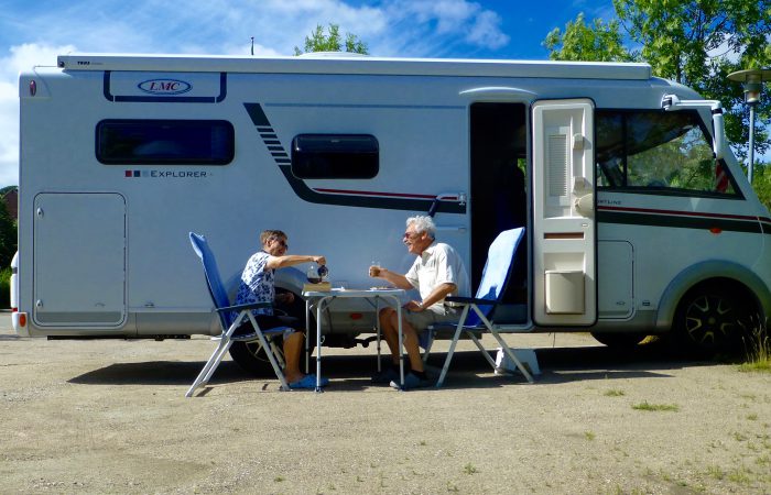 mit dem Reisebericht und den kommenden Zielen. Wir stehen hier ohne Landstrom, aber unsere Solaranlage lieferte bis zu 5 Ampere Strom und die