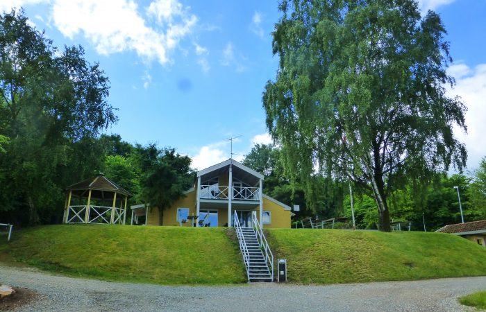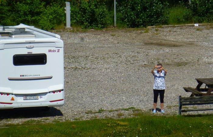 Die letzten Wolken lösten sich bald auf. Bei Sonnenlicht sieht doch alles viel freundlicher aus. Der Stellplatz liegt wirklich sehr schön, die Einrichtungen sind aber recht