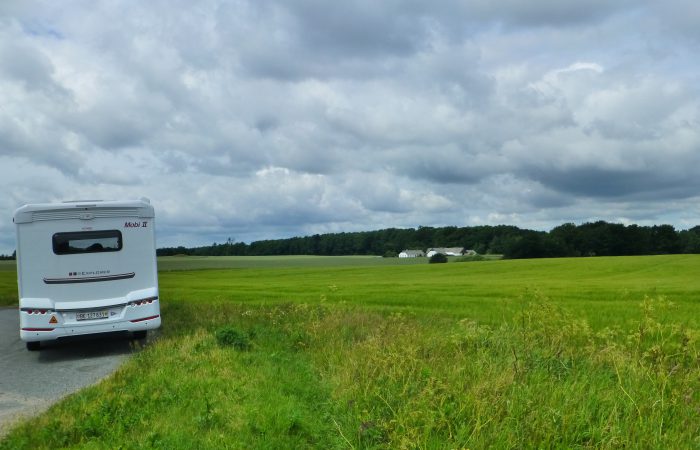 Miele eben sehr verwöhnt. Hier dauert alles enorm viel länger. Auf unserem Abendspaziergang erkannten wir erst, wie einsam wir hier stehen. Uns gefällt das, in dieser hügeligen Landschaft inmitten von Getreidefeldern. Es ist 22 Uhr als die letzten Sonnenstrahlen unseren Mobi streifen.