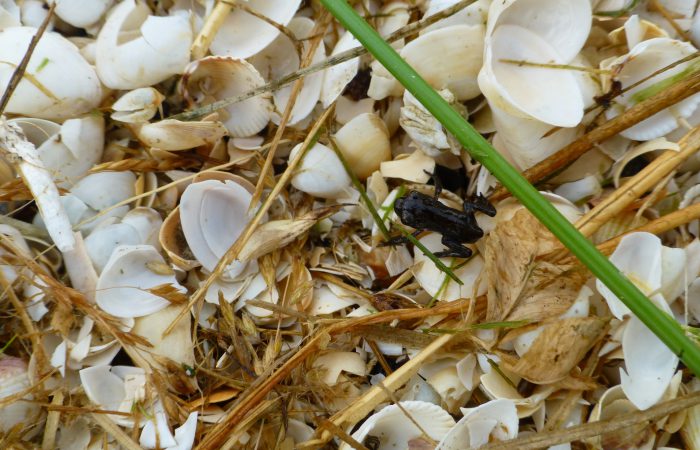 schwarz und etwa 10 mm gross, zu Tausenden an Land herum hüpften. Später kam sogar die Sonne noch einmal durch und tauchte die Landschaft, eine Mischung aus Heide