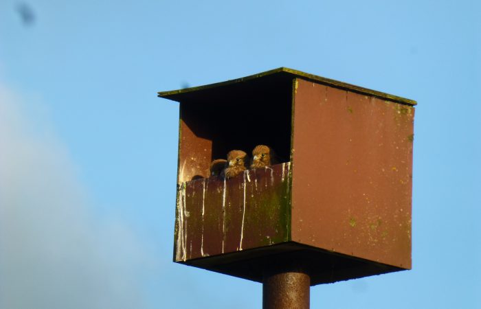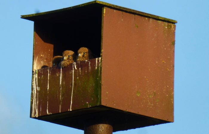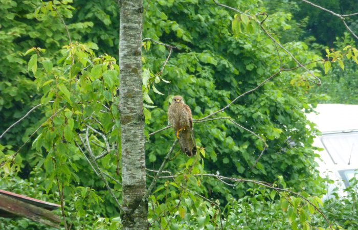 und Schwarzwald, in ein weiches Licht. Auf dem Gelände gibt es zwei Nistkästen, in denen Turmfalken ihre Jungen aufziehen.