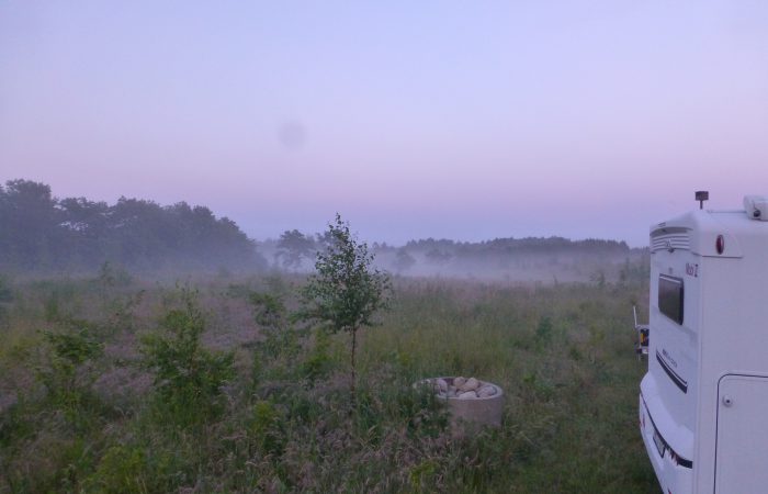 Der Tag begann mit Sonne. Wir blieben die Einzigen auf diesem Standplatz. Hier steht man einsam und ruhig. Entsprechend gut haben wir geschlafen.