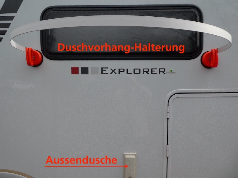 Wir haben eine Aussendusche. Die benützen wir natürlich nicht auf normalen Stell- oder Cämpingplätzen, sondern nur in der „Wildnis“, und auch da nur recht selten.