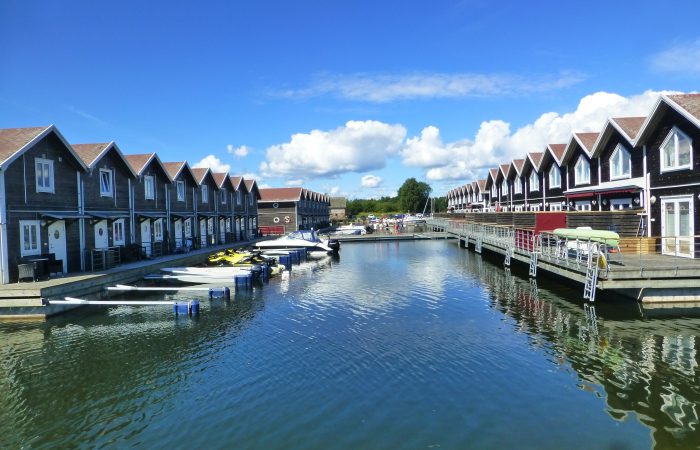 der Ferienhäuschen auf Schwimmpontons gebaut wurden. Einige sind noch (oder schon wieder) zu verkaufen. Es wird auch Bauland angeboten. Für unseren Geschmack etwas zu viel Retorten-Feeling.