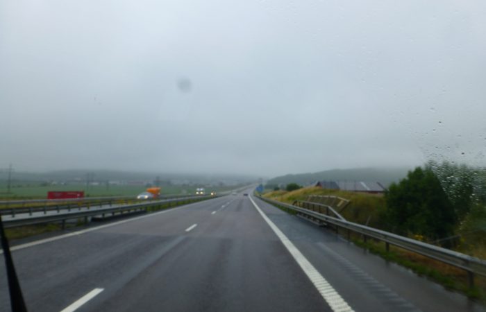 Was für ein Kontrast. Gestern um 23 Uhr noch dieser Sonnenuntergang, und heute begann der Tag mit Regen und endete mit