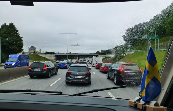 noch auf besseres Wetter. Michael holte das Stromkabel ein und wir machten uns auf den Weg Richtung Göteborg. Unser Navi meldete: „vor ihnen ist ein Stau“. An einem