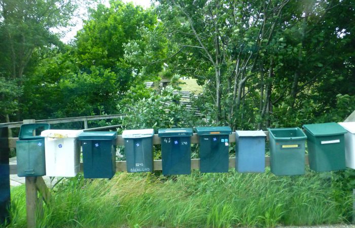 zum Glitzern. Überall liegen Sommerhäuser versteckt hinter Bäumen und Felsen. Dass es viele sein müssen, verraten die Briefkästen am Wegrand. Wieder zauberte Margit ein feines Abendessen.