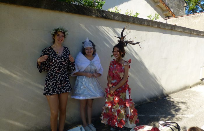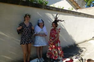 Auf dem Weg in den Ort kamen wir an einem Gymnasium vorbei. Die Schüler feierten in lustigen Kostümen Karneval.
