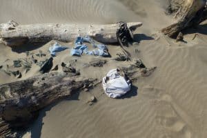 Zwischen angeschwemmten Baumstämmen lagen versandete Klamotten, was Renates Fantasie sogleich zu Krimigedanken anregte.