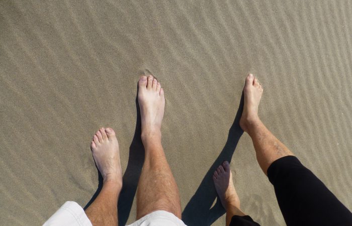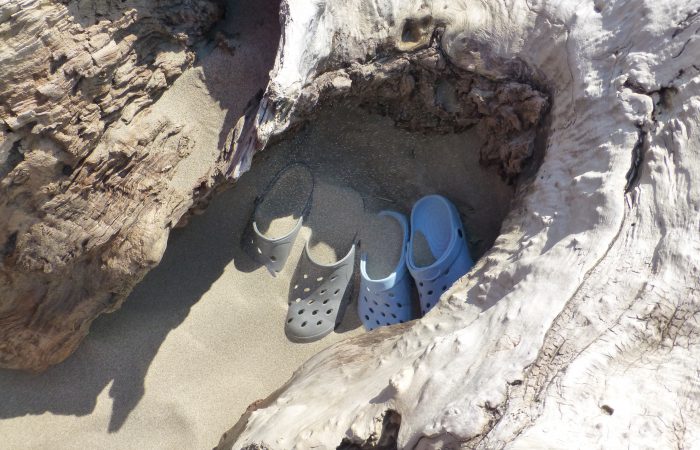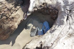 Unsere Schuhe hatten wir am Anfang unserer Wanderung „untergestellt“. Als wir zurück kamen, waren sie mit Flugsand gefüllt.
