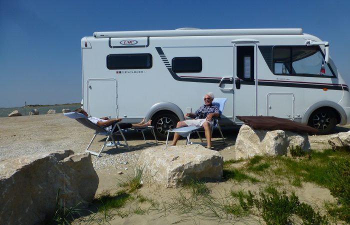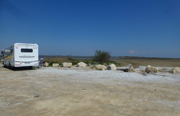 Wir haben bestens geschlafen auf dem Standplatz der Gemeinde von Salin de Giraud. Wir fuhren heute nochmals zum „Plage de Piémanson“, den wir gestern Abend verlassen mussten, da man dort nicht über Nacht stehen darf. Wo wir gestern auf dem Strand noch standen, fühlte sich der Sand heute eigenartig weich an.