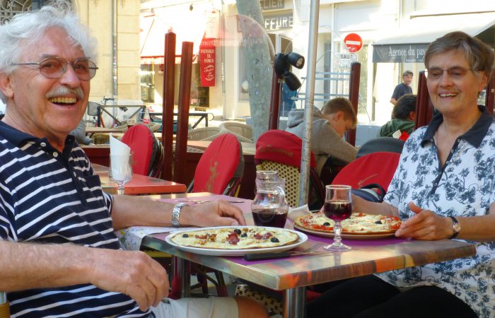 Wir hatten plötzlich beide Lust auf Pizza. Auf dem „Place du Forum“, in einem italienischen Lokal, wurde unser Wunsch erfüllt. Es war ganz ausgezeichnet.