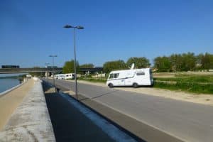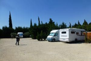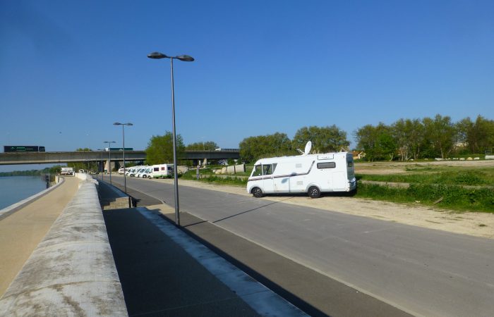 Der Standplatz in Arles liegt in Sichtweite der Nationalstrassen-Brücke, aber der Mistral blies die Geräusche zum Glück in die andere Richtung. So konnten wir trotzdem gut schlafen.