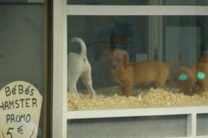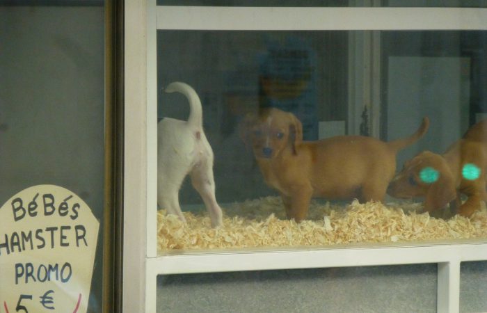 Wir fuhren an einer Kleintierhandlung vorbei, wo uns die drei Welpen im Schaufenster Leid taten. Ob das die hiesigen Tierschutzvorschriften zulassen?