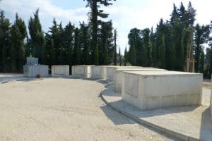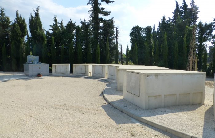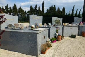 Wir liefen an einem neu angelegten Friedhof vorbei, der unser Interesse weckte. Grosse oberirdische Betonblöcke, vorne mit einer Öffnung, dienen wohl als Familiengrab.