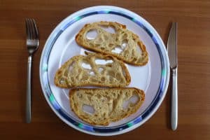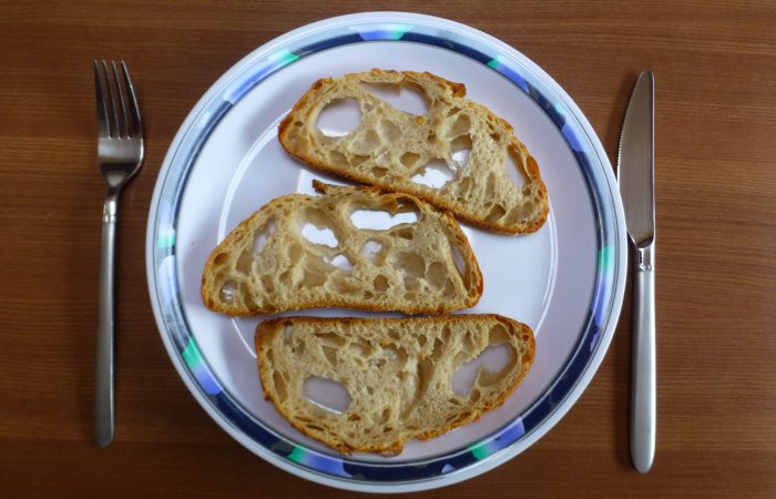 Bei unserer Mittagspause stellten wir fest, dass wir ein sehr löchriges Brot gekauft hatten. Da kann man Butter sparen.