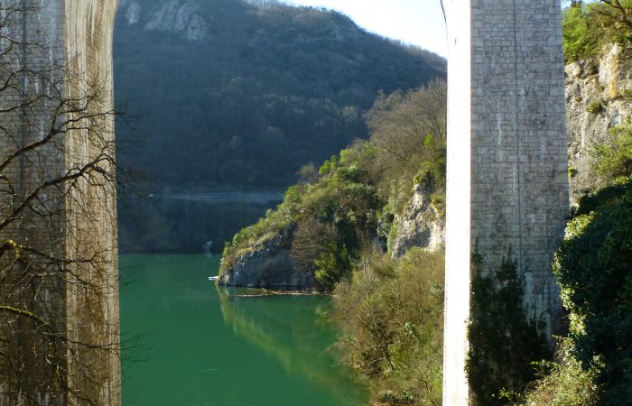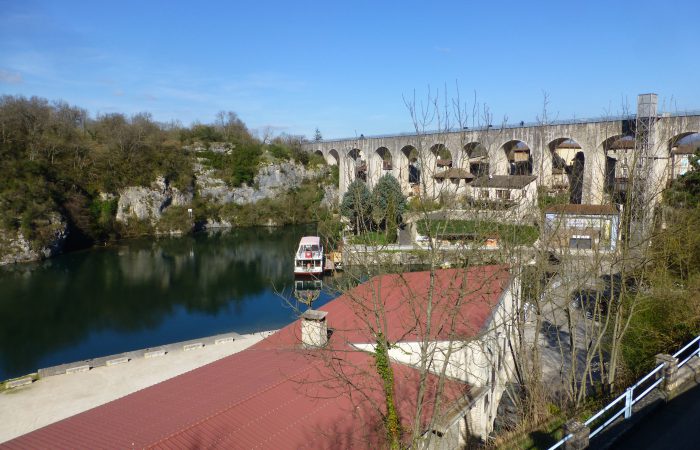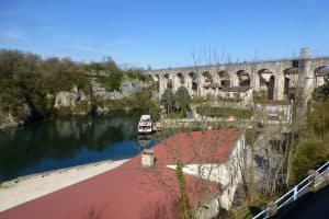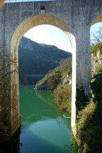 in St. Nazaire en Royans überspannt ein Aquadukt den Ort und die Isère.