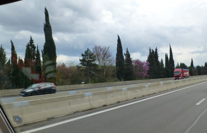 Gute Ohren hören die Bahnlinie aus der Ferne, aber mit Ohropax und genügender Müdigkeit hat auch Michael gut geschlafen. Bevor wir Deutschland wieder verliessen, deckten wir uns noch mit aktuellen Zeitschriften ein. Die Fahrt zurück zum Weingut in der Nähe von Donzére verlief planmässig, wobei uns heftiger Sturm begleitete.