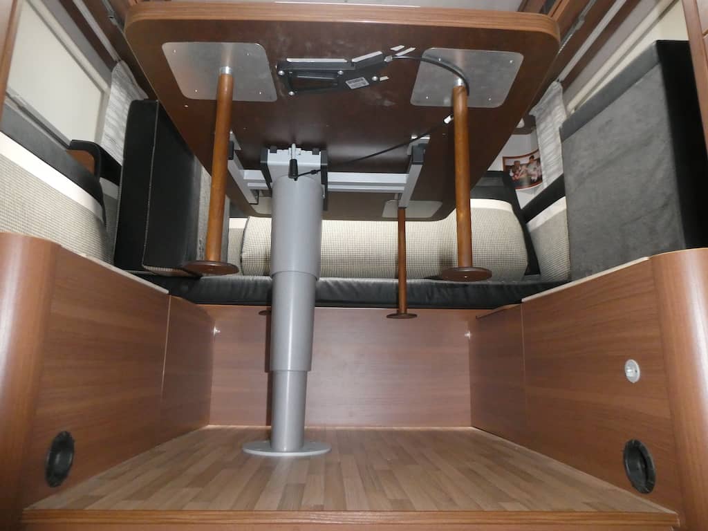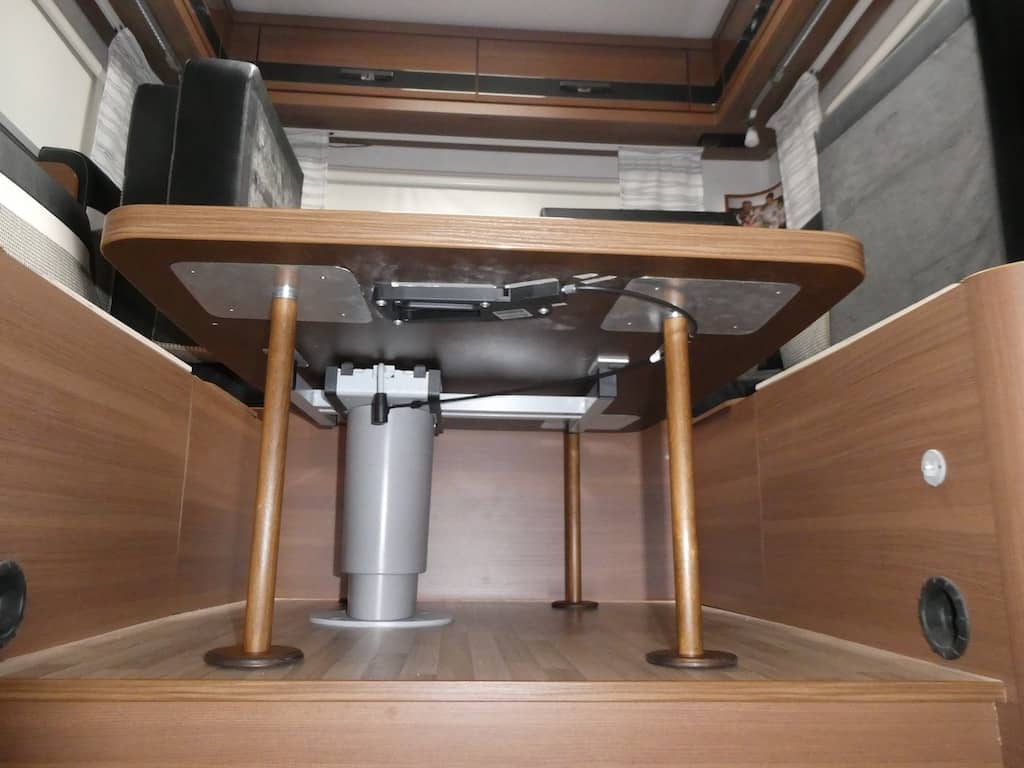 Gasfederunterstützt ist der Tisch höhenverstellbar, aber auch horizontal zu verschieben, um besser zum hinteren Querbett oder an die Hängeschränke zu kommen.