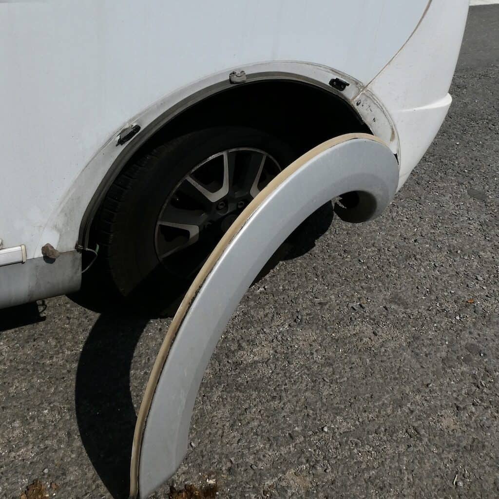 Auch wir hatten beim 2. Mal richtig Glück, als der Kotflügel nur noch an einer Schraube hing.