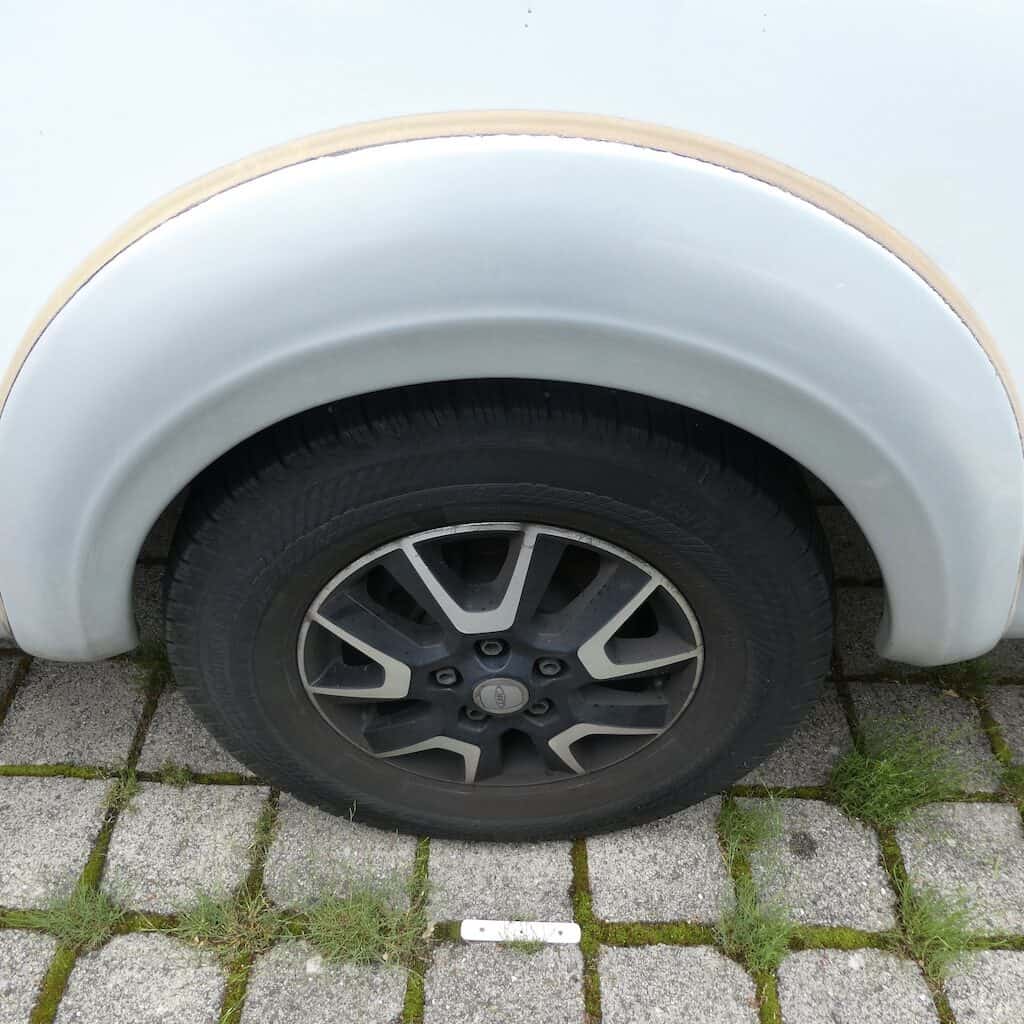 Auf unserer letzten Tour hat sich bei unserem LMC Explorer (Baujahr 2015) auf der Beifahrerseite zweimal ein Kotflügel gelöst, siehe Foto. Wie ein Jahr vorher auch schon der Kotflügel auf der Fahrerseite. Die Befestigung ab Werk, – nur mit oben drei Kunststoff-Clips und unten an den Enden je eine Schraube -, hält den Belastungen nicht dauerhaft Stand. Wir sind da kein Einzelfall. Unterwegs trafen wir einen anderen Explorer-Eigner aus dem Raum Stuttgart, der hat das ganze Teil sogar auf der Autobahn verloren.