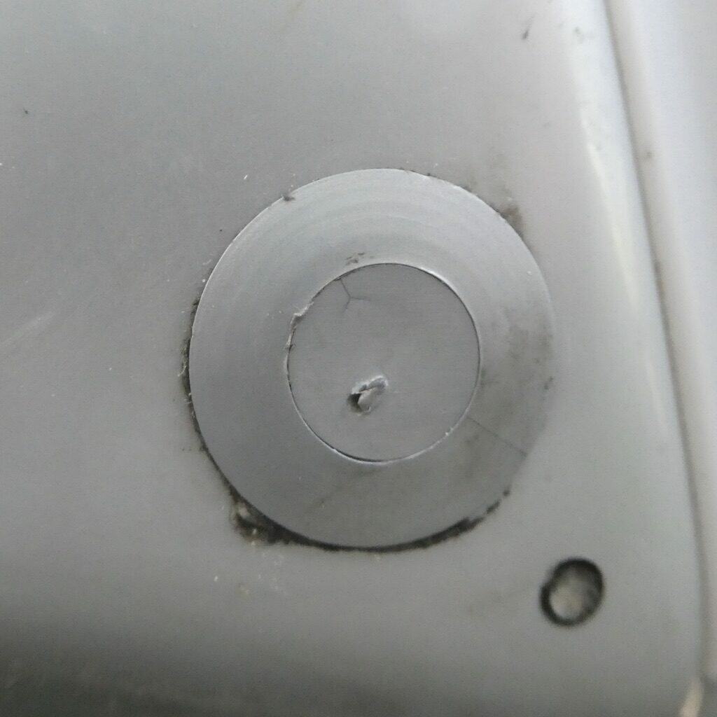 Die Kotflügel sind unten an beiden Enden mit je einer Schlaube fixiert. Nach dem Entfernen der Abdeckkäppchen (einige fehlen schon) lassen sich die Schrauben herausdrehen. Danach lässt sich der Kotflügel im Normalfall nach oben abheben. In meinem Fall war die Notreparatur über den Vorderrädern mit dieser Epoxi-Klebmasse jedoch so stabil, dass das Lösen nicht ganz so einfach war.