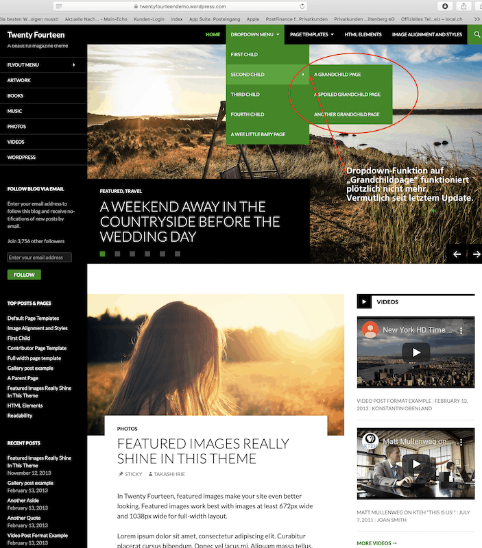 Erst kürzlich ist aufgefallen, dass die Dropdown-Funktion auf unserem mobiblog.ch nicht mehr richtig funktioniert. (vermutlich seit dem letzten Update von WordPress).