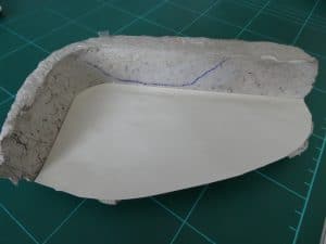 Zuerst fabrizierte ich eine Negativform aus Papiermaschee von der gegenüberliegenden unbeschädigten Seite.