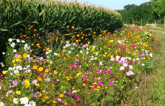 keinem Platz auf dieser Reise. Es stimmte eben auch mit dem Wetter. Das Abmelden ging sehr freundlich und humorvoll über die Bühne. Vor Burg erfreuten wir uns noch einmal an dem mit Blumen eingefassten Feld.