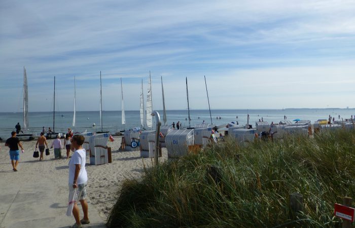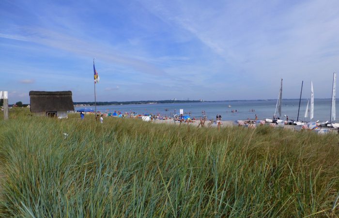 Bei Scharbeutz hielten wir für einen kurzen Blick auf Strand und Ostsee an und assen ein Brötchen mit Matjes. Man muss hier, in