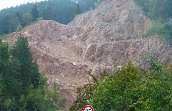 der seine Wiese am Hang ferngesteuert mähte. Unsere Weiterfahrt führte wieder durch den Schwarzwald. Dem werden mancherorts grosse Wunden zugefügt, um Steine zu brechen.