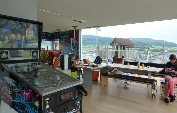 (wobei dieses Kind inzwischen ein erwachsener Mann ist und eine Frau und 3 Kinder hat). Im loftartig gestalteten Wohnraum spielt sich alles ab. Kochen, Essen, Spielen und