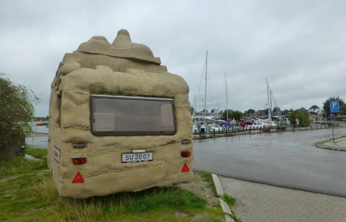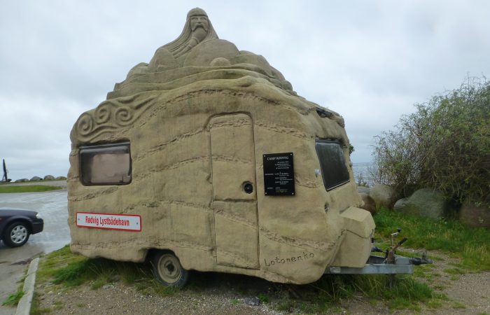 Kalkschichten der Fischton zu finden ist. Dann steht da auch ein „Wohnwagen-Kunstwerk“: sieht aus wie aus Sand und ist auch tatsächlich aus Sand. Natürlich