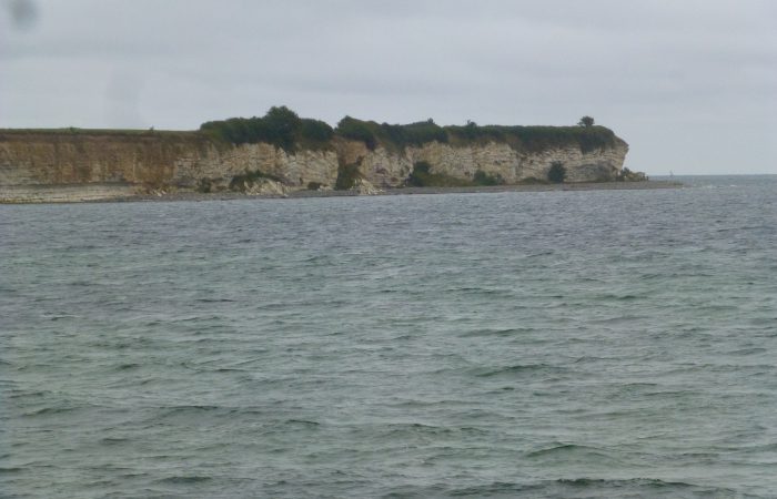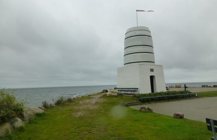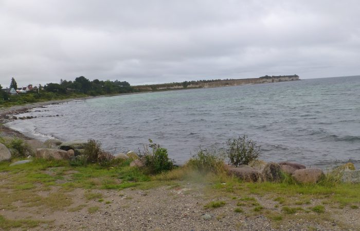 Rødvigs Wahrzeichen, der Flint-Ofen. In dem wurden vor 100 Jahren Feuersteine gebrannt. Am Ende der Bucht sieht man Stevn Klint, wo zwischen den