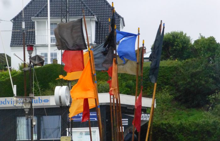 zeitweise so stark auf’s Dach, dass Michael die Kommentare zur TV-Übertragung des F1-Rennens kaum verstand. Dazu stürmte es so stark, dass die Fischerfahnen