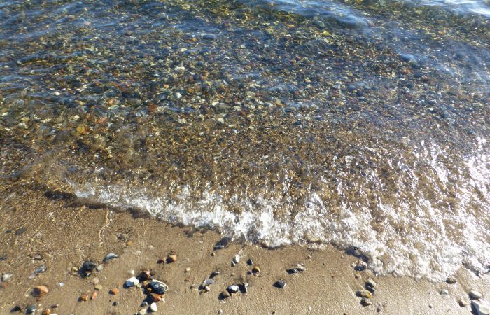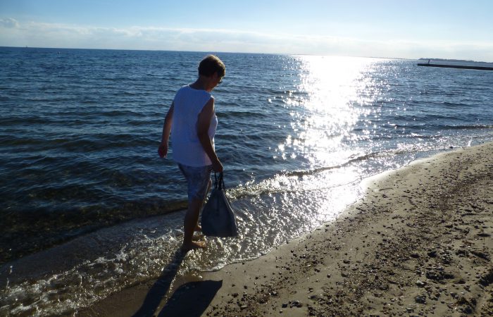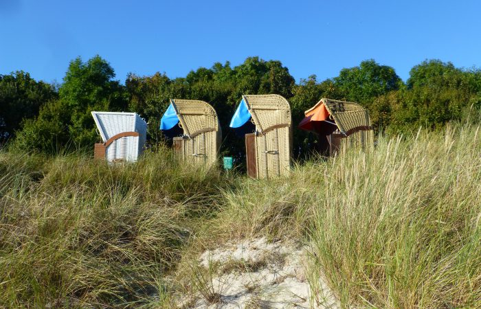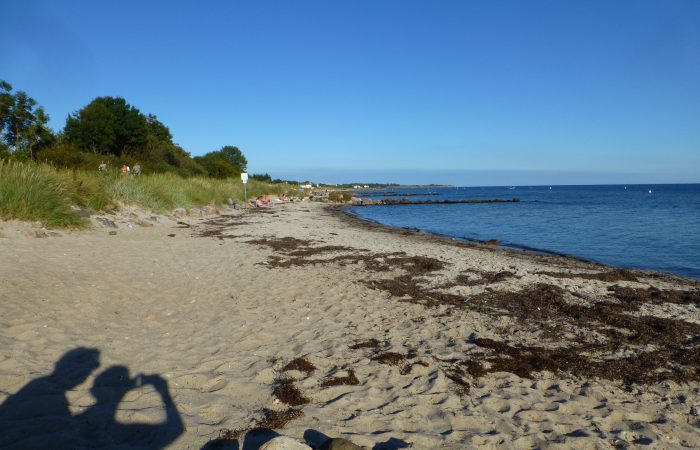 unternahmen wir immerhin eine Strandwanderung. Die Strandkörbe stehen schon für’s Winterlager bereit. Der Strand ist hier aber nicht sehr schön. Schmal und