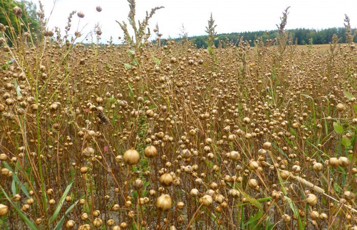 für ein Vogel gewesen sein könnte. Wer weiss das? Der Landwirt, den wir gefragt haben, wusste es auch nicht. Hingegen bekamen wir Auskunft, dass auf dem Feld Flachs angebaut wurde. Aus den Körnern wird Öl gepresst, das in der Farbindustrie verwendet wird.