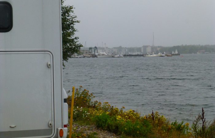 Es regnete leicht. Der Campingplatz dort liegt schön, hatte jedoch Schweizer Preisniveau, weshalb wir weiter fuhren nach Västervik. Hier stehen wir super auf einem Stellplatz direkt an der Ostsee