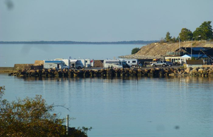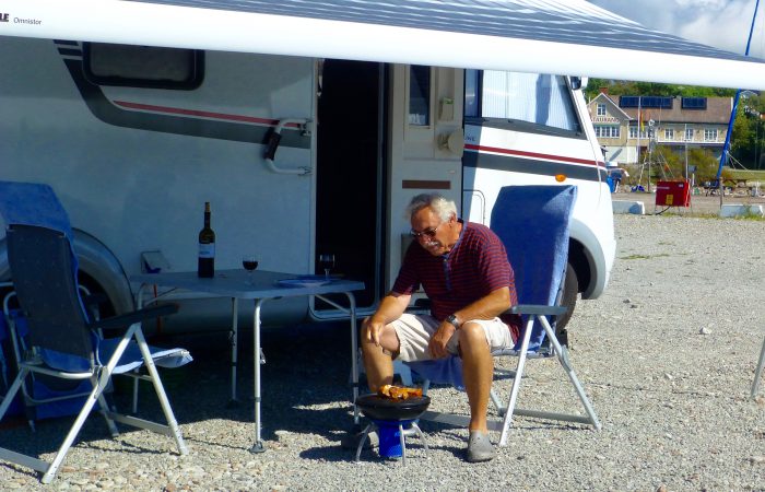 Der Standplatz in Sandvik passte uns. Er hat Kiesboden, was bei Regen grosse Vorteile hat. Man bringt auch weniger Sand oder
