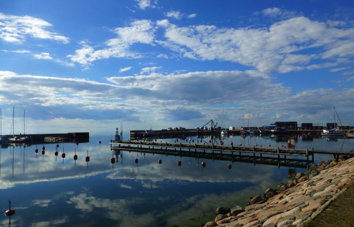 recht, in welche Richtung sich das Wetter entwickeln würde. Es war trocken und mild, aber immer noch leicht bewölkt. In Böda Hamn schauten wir uns