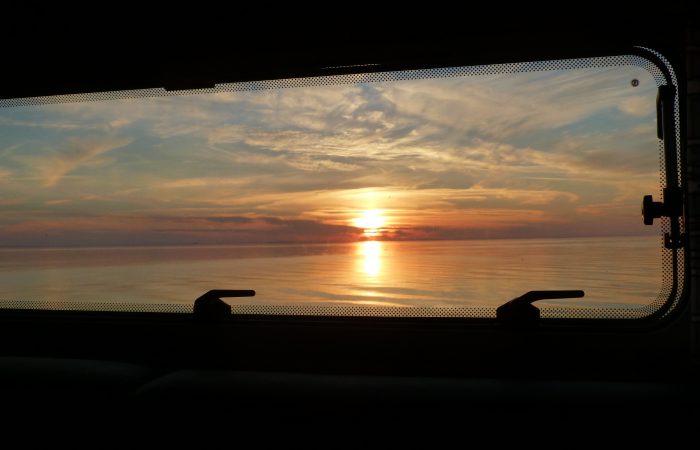 und hat etwa 30 Plätze mit Strom. Wir stehen so, dass wir von unserer Hecksitzgruppe direkt auf’s Wasser sehen. Erstmals seit langer Zeit brauchten wir sogar unsere Markise, um