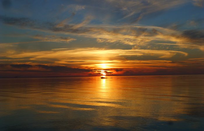 mehr als Restaurant dient. Die Häuser machen alle den Eindruck, als seien es kleine Sommerhäuser. Der Tag ging wieder mit einem malerischen Sonnenuntergang zu