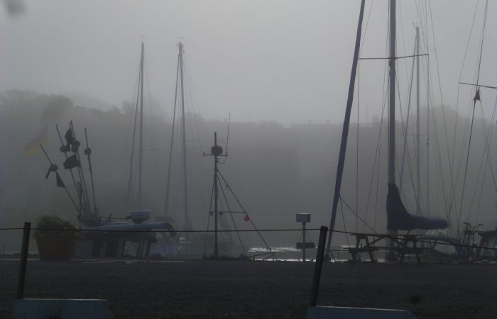 Heute Morgen lag über dem Hafen von Sandvik dichter Nebel. Diese interessante Stimmung konnte mit der Kamera