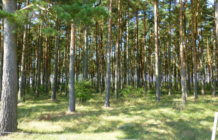 In der hier flachen Landschaft gibt es immer wieder kleine Kiefernwäldchen. Wir staunen über die vielen sehr einsam gelegenen Sommerhäuser.