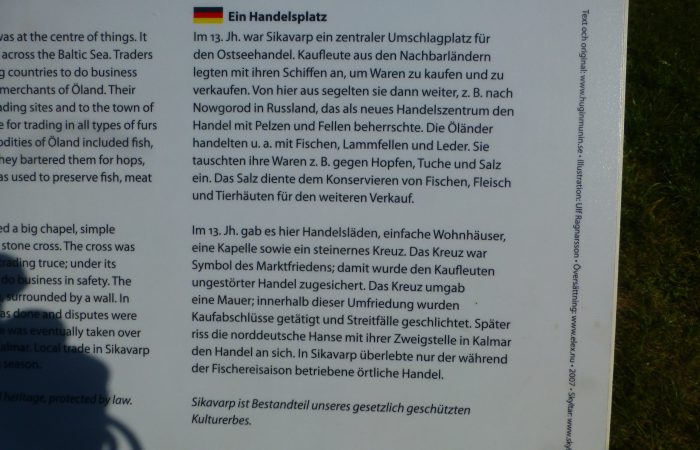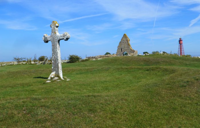 Bei Kapelludden stehen nahe am Wasser Reste einer Kapelle und ein Kreuz. Hier war im 13. Jahrhundert ein Handelsplatz, auf dem die Kaufleute ungestörter Handel zugesichert wurde.